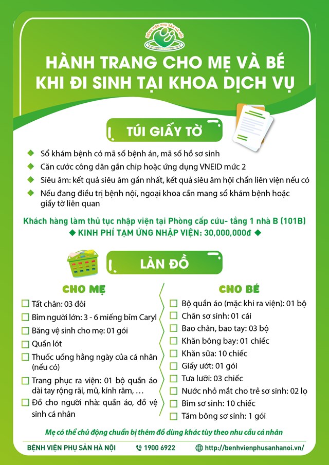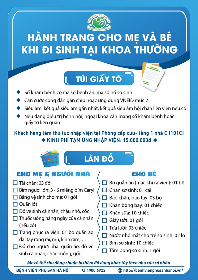 Các mẹ tham khảo danh mục đồ sau để chuẩn bị hành trang đi sinh thật gọn nhẹ, tiện lợi nhé