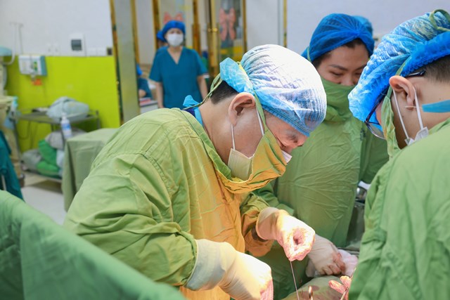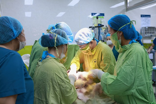 Ca phẫu thuật được thực hiện bởi BSCKII Đỗ Xuân Vinh và ThS.BSNT Trần Anh Đức – Phó Trưởng khoa Sản bệnh A4, với sự phối hợp của ekip Gây mê hồi sức và ngân hàng máu đã được chuẩn bị từ trước.