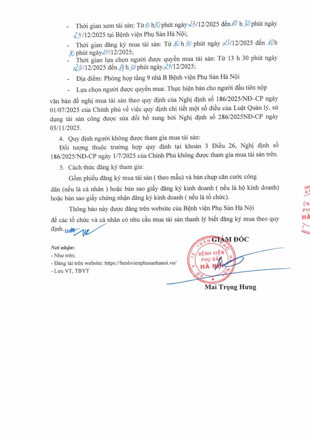 Thông báo thanh lý tài sản theo quy định của nhà nước