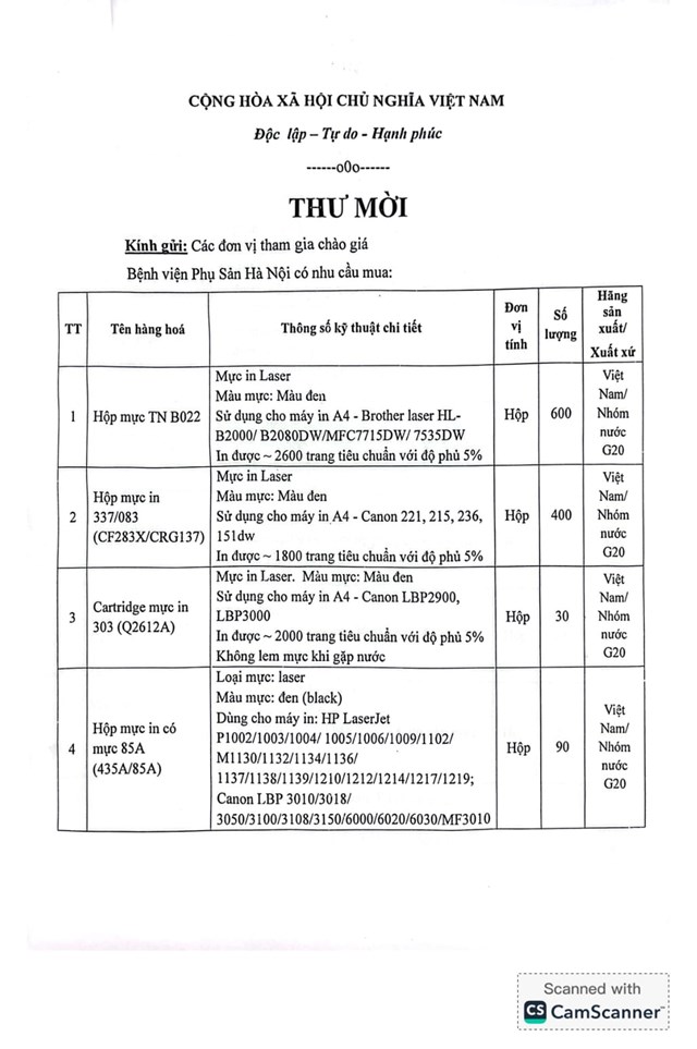 Thư mời chào giá