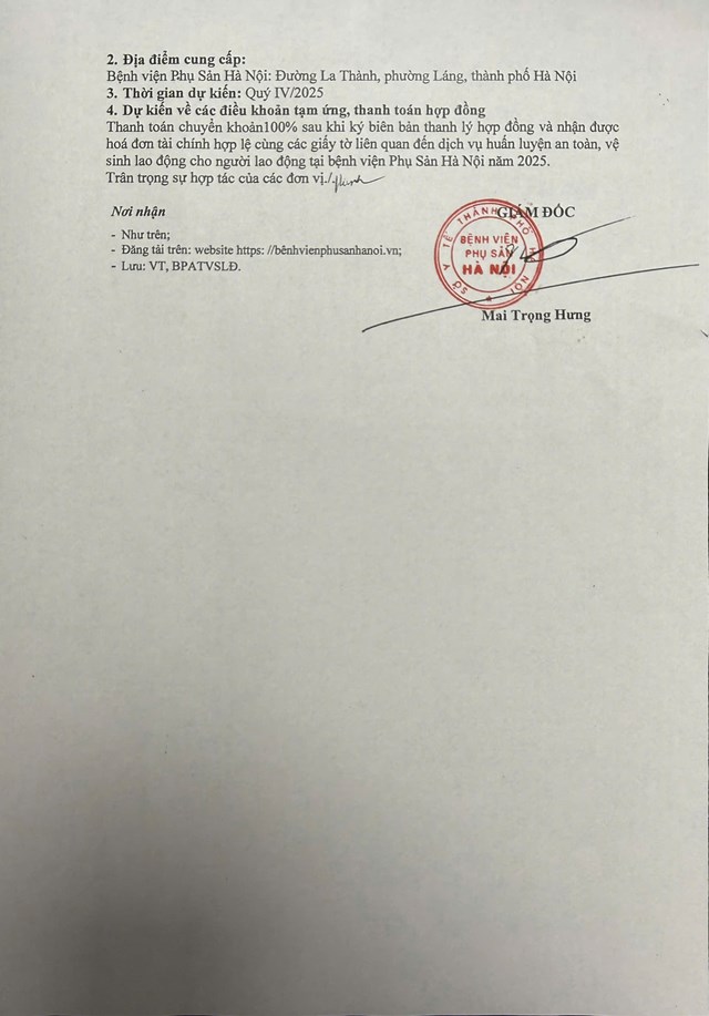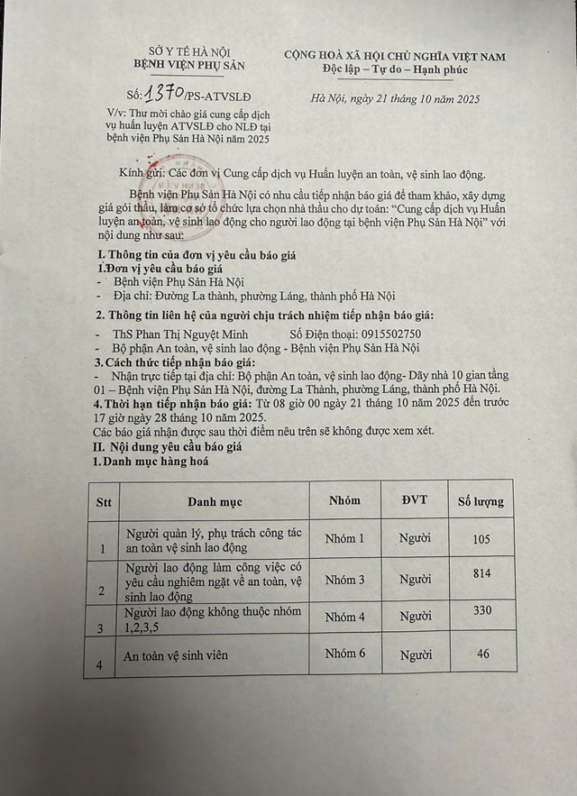 Thư mời chào phí dịch vụ huấn luyện an toàn, vệ sinh lao động