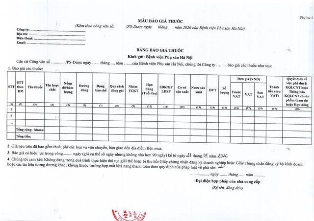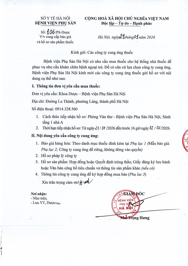 Thư mời cung cấp báo giá và sản phẩm thuốc