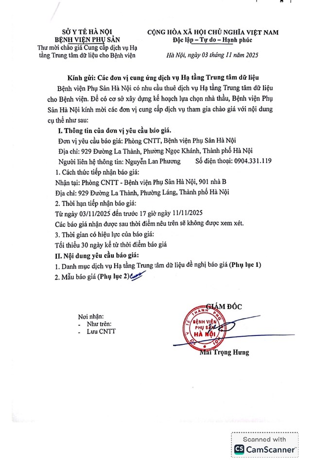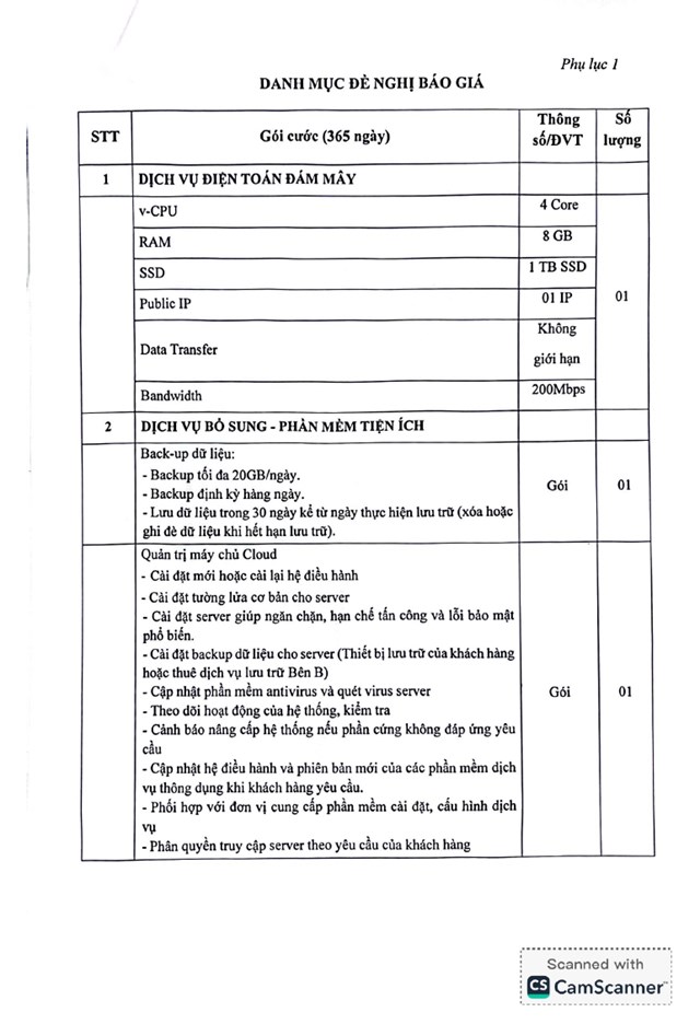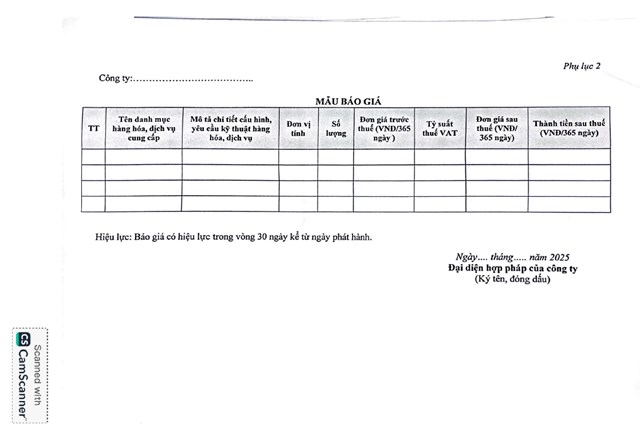 Yêu cầu báo giá cung ứng dịch vụ