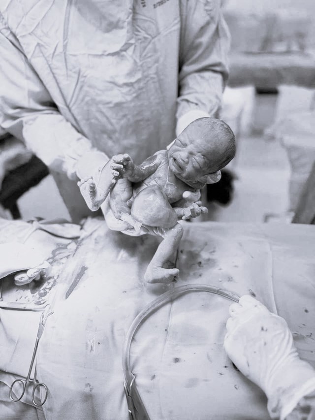 Khi thai được 38 tuần, có dấu hiệu chuyển dạ, BSCKII Nguyễn P. Tiến Đạt – Trưởng khoa Đẻ A2 và BS Đàm Văn Hùng đã quyết định mổ lấy thai cho chị Thu, ca mổ diễn ra an toàn, đón một bé trai nặng 1800 gram, da hồng hào. Bé được chuyển sang khoa Sơ sinh và sau đó chuyển tiếp sang Bệnh viện Nhi Trung ương để điều trị. Sản phụ sau mổ tỉnh táo, các chỉ số sinh tồn ổn định và được chăm sóc tại khoa đẻ A2.