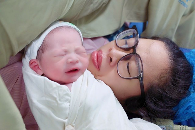 Tiếng “Oe oe” của con vang lên, khiến cả phòng mổ như vỡ òa trong niềm hạnh phúc. Sau vài tiếng khóc báo hiệu con chào đời an toàn, con được ấp vào ngực mẹ, đôi mắt long lanh như đang tò mò chào thế giới mới.