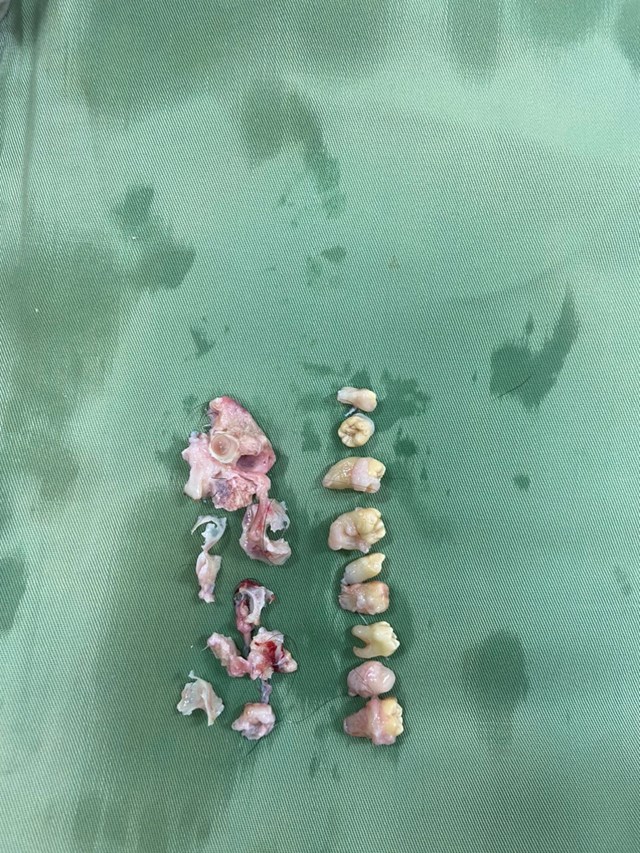 Bằng thao tác tỉ mỉ, khéo léo, các bác sĩ đã bóc tách thành công khối u, giữ lại tối đa mô buồng trứng lành để bảo tồn khả năng sinh sản cho bệnh nhân. Bệnh phẩm thu được hơn chục mảnh xương và răng, kèm tóc.Sau mổ, sức khỏe ổn định, phần buồng trứng còn lại tiếp tục hoạt động bình thường.