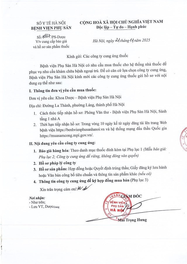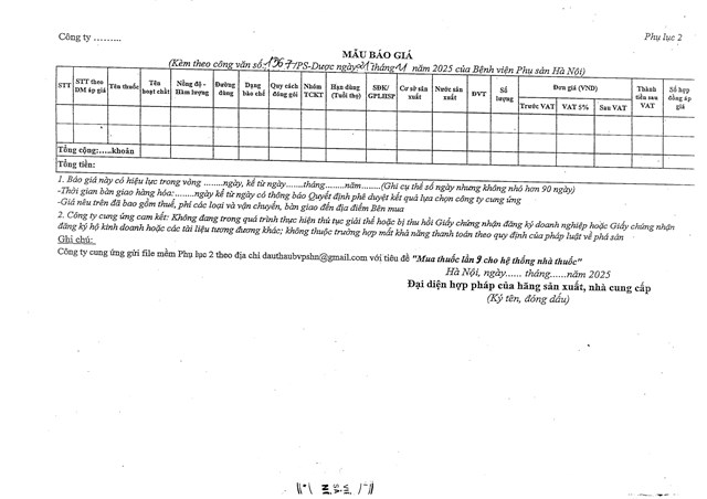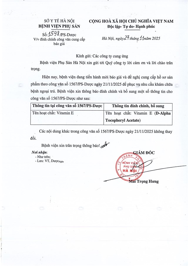 Đính chính công văn cung cấp báo giá