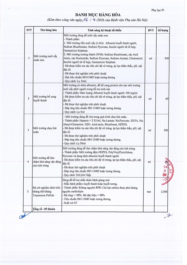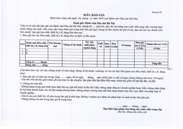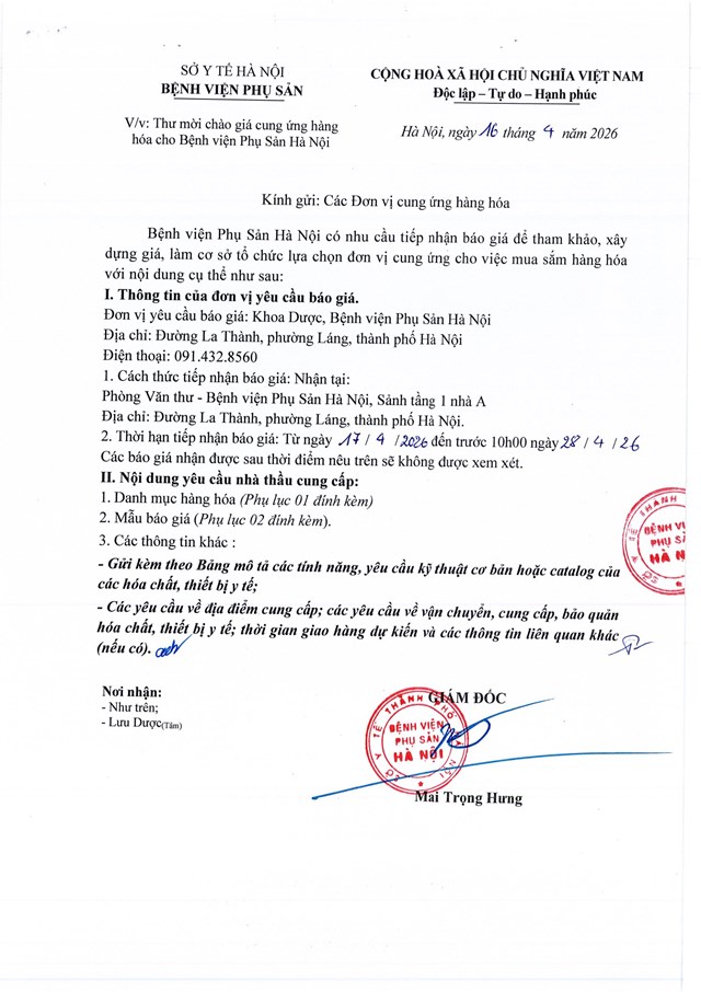 Thư mời chào giá cung ứng hàng hóa cho Bệnh viện Phụ Sản Hà Nội