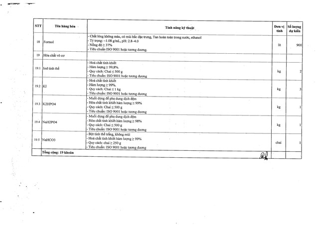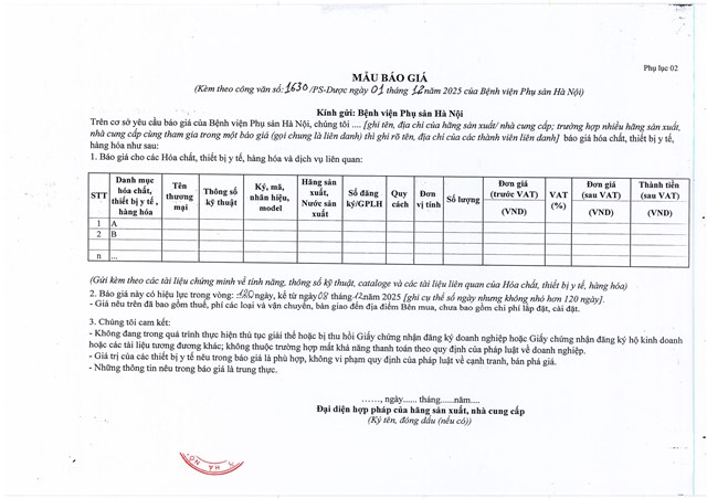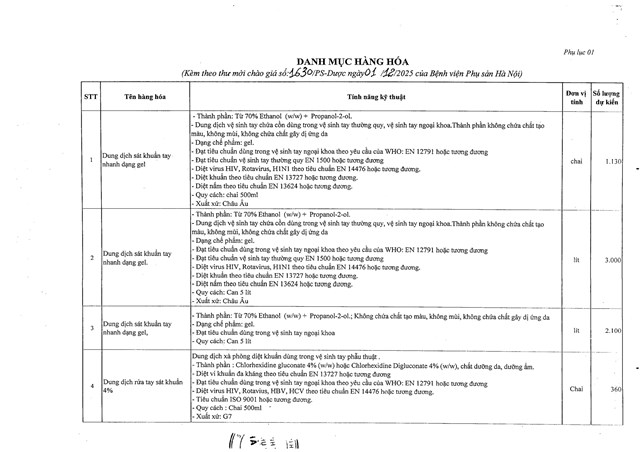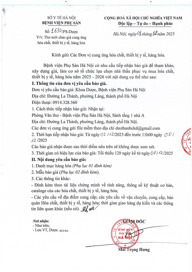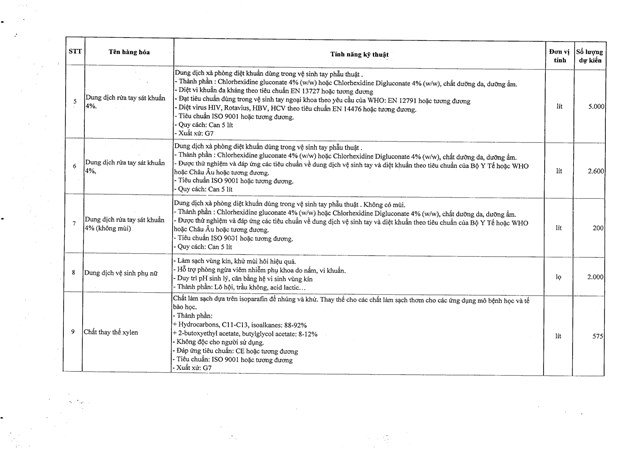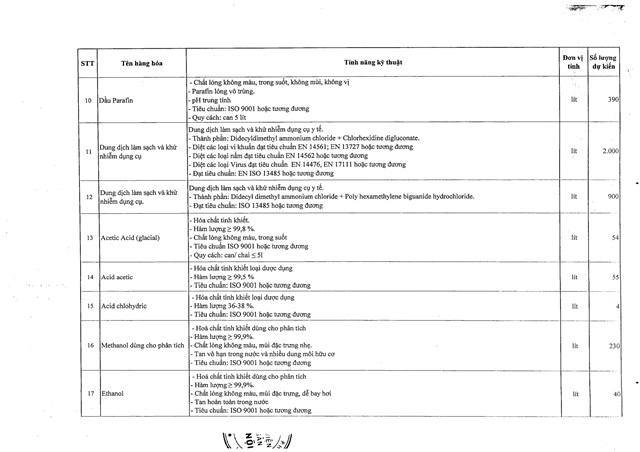 Thư mời chào giá cung ứng hóa chất, thiết bị y tế, hàng hóa