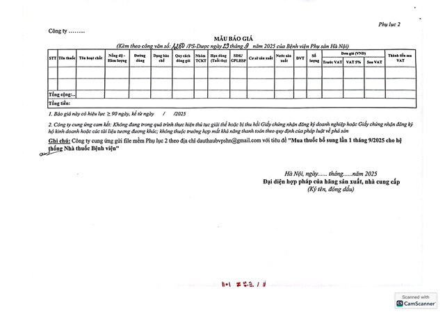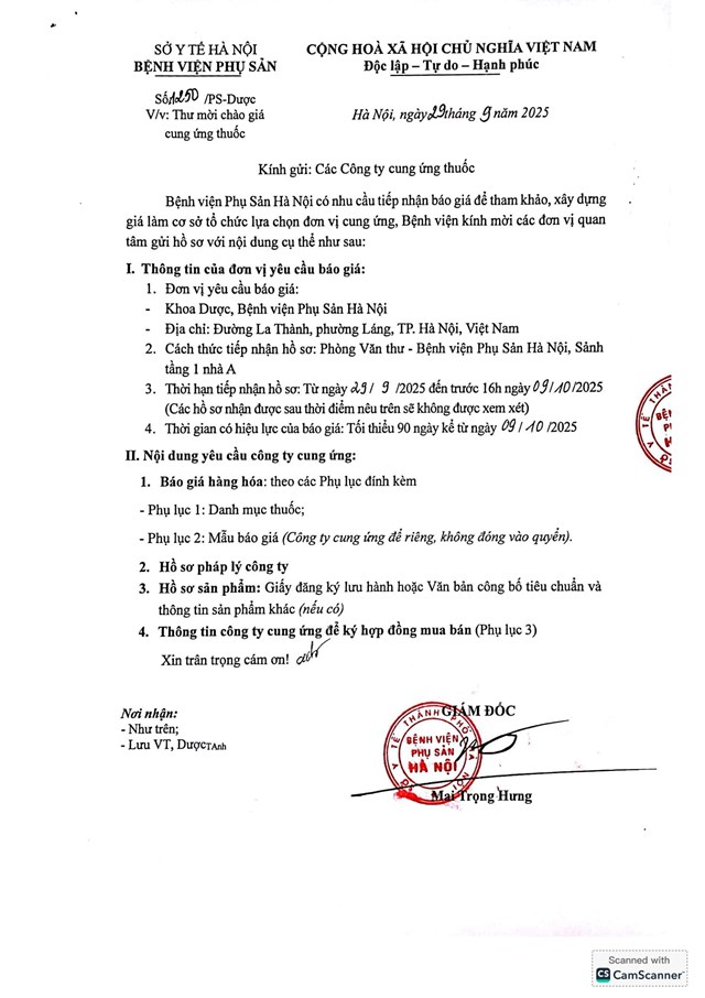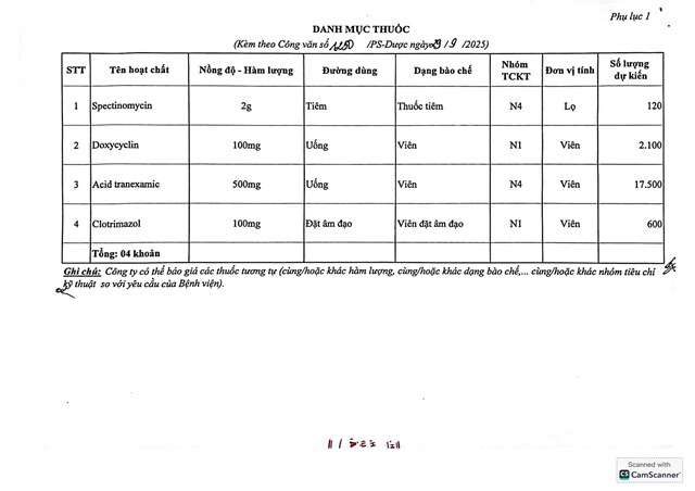 Thư mời chào giá cung ứng thuốc