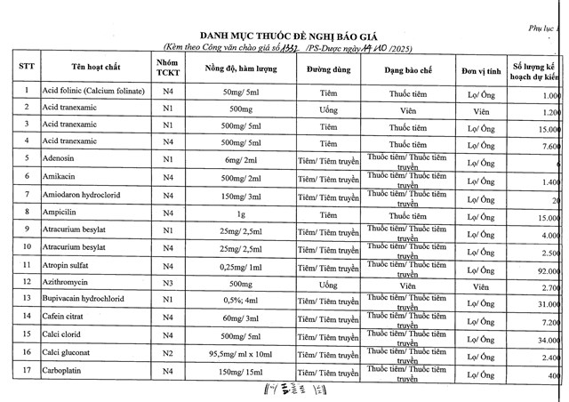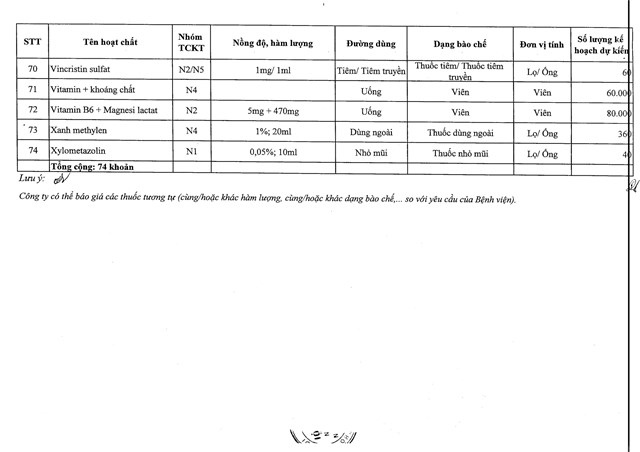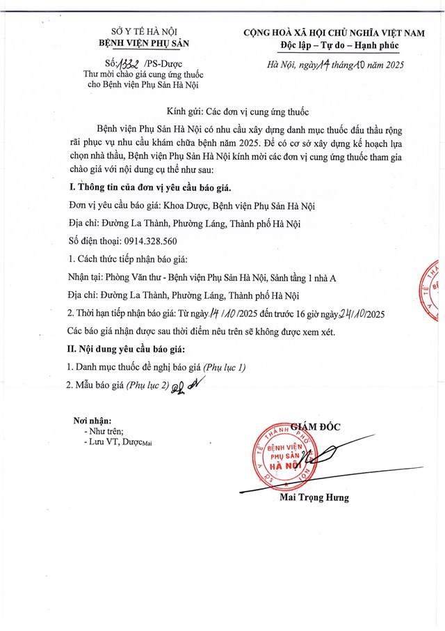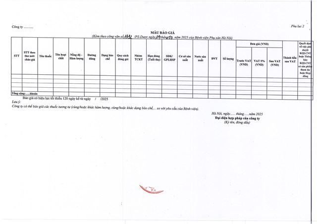 Thư mời chào giá cung ứng thuốc cho bệnh viện Phụ Sản Hà Nội