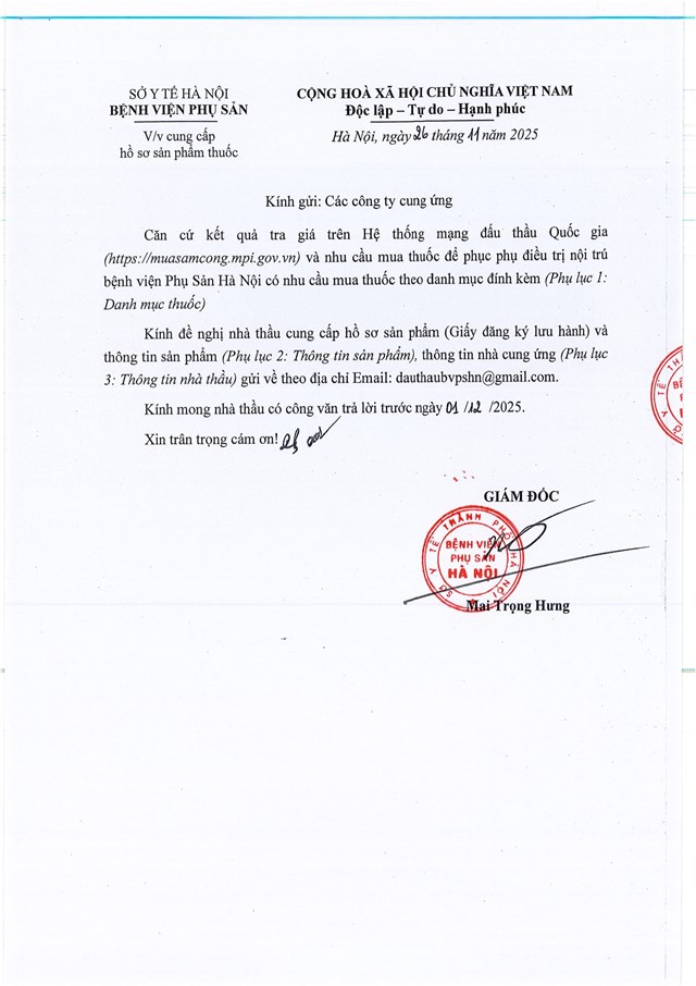 Thư mời cung cấp hồ sơ sản phẩm thuốc