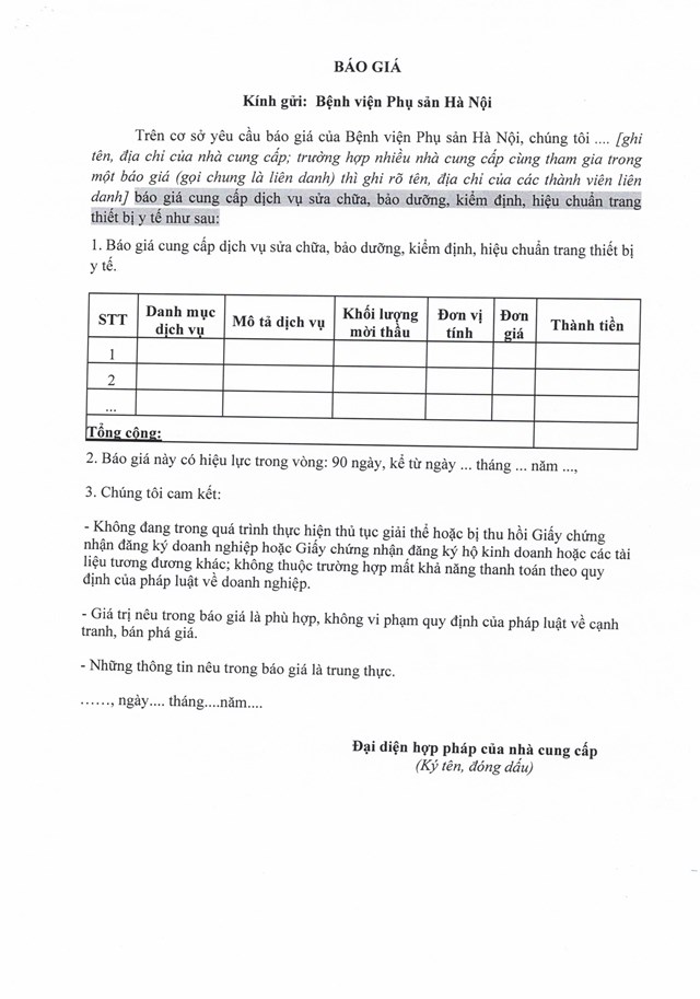 Yêu cầu báo giá